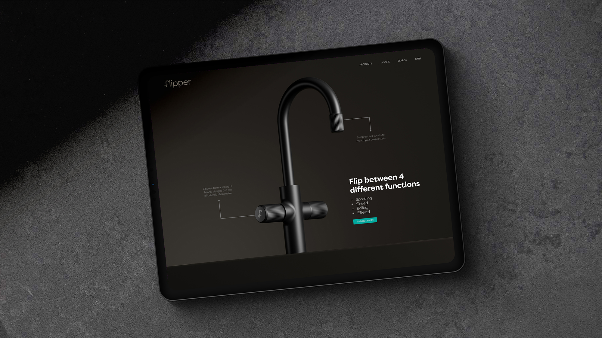 We created a name and identity that celebrates its ability to effortlessly flip between everything you could want from a tap. The identity heroes our ‘f’ icon combined with the ‘+’ mark to suggest there’s more to this brand. The wider brand world reinforces the brand’s versatility and goes beyond functional tick-boxing, to position Flipper as a multi-functional masterpiece.