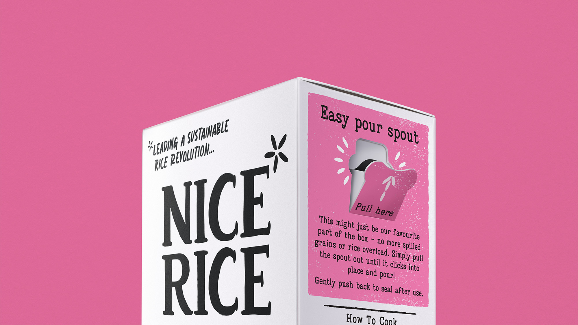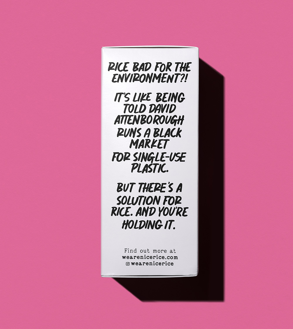 Creating the brand from scratch, we used a stripped-back colour palette to cut through and signal a clear alternative. The rice asterisk identity becomes the integral tool for inviting people to find out more, supported by clear messaging and illustrations on pack and the wider brand world.